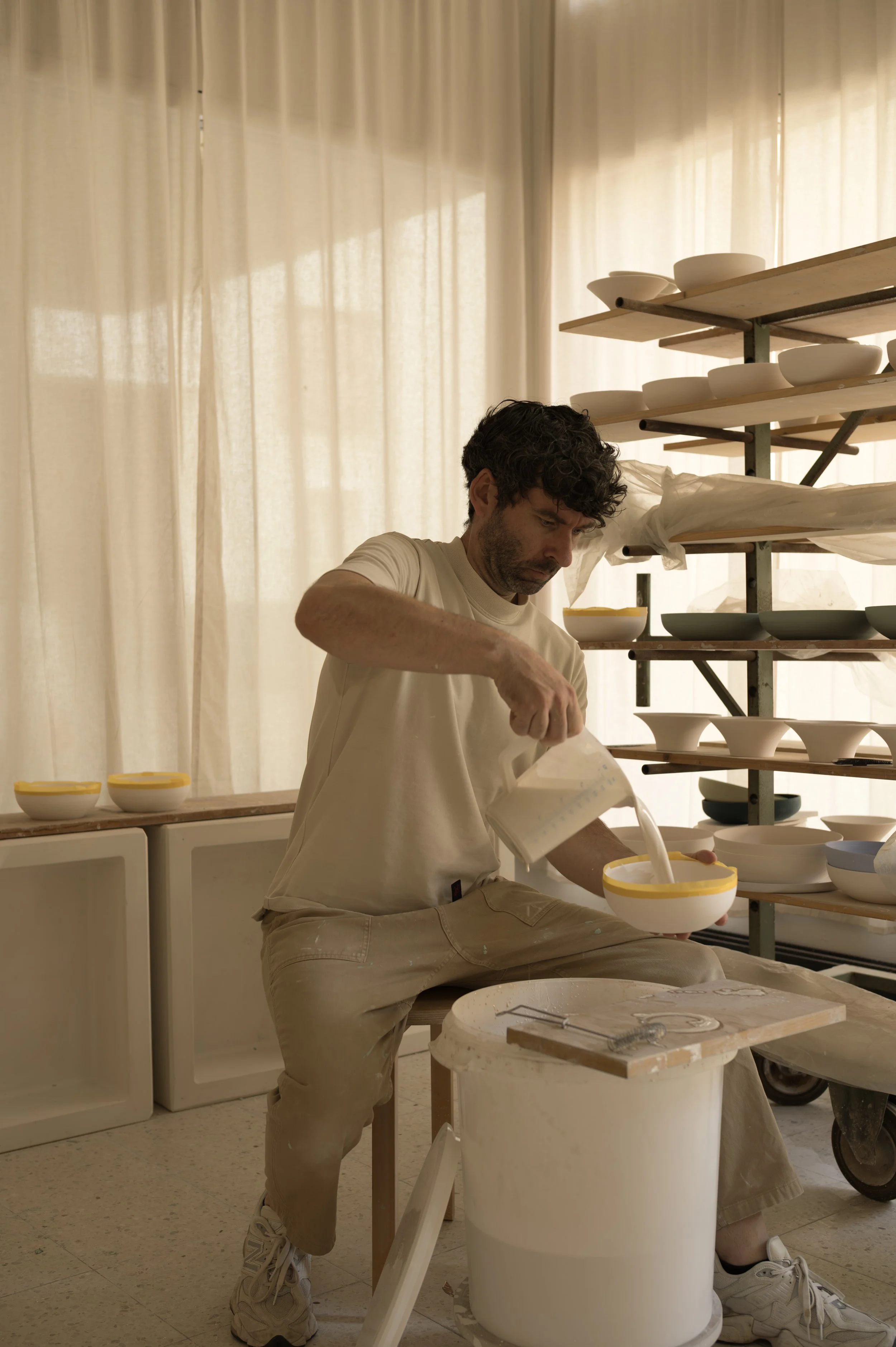 After graduating in 2018 Marcel had the privilege of working alongside renowned designers such as Hella Jongerius and Prof. Uli Budde, absorbing their varied methodologies and design approaches. Immersed in a world of colors, materials, and forms, his hands-on mentality enveloped. It was through his exploration of ceramics that he discovered the perfect medium for his approach on design. Guided by a profound connection to the material, Marcel now embarks on a new chapter as he establishes his own studio Objektnormal in 2022.